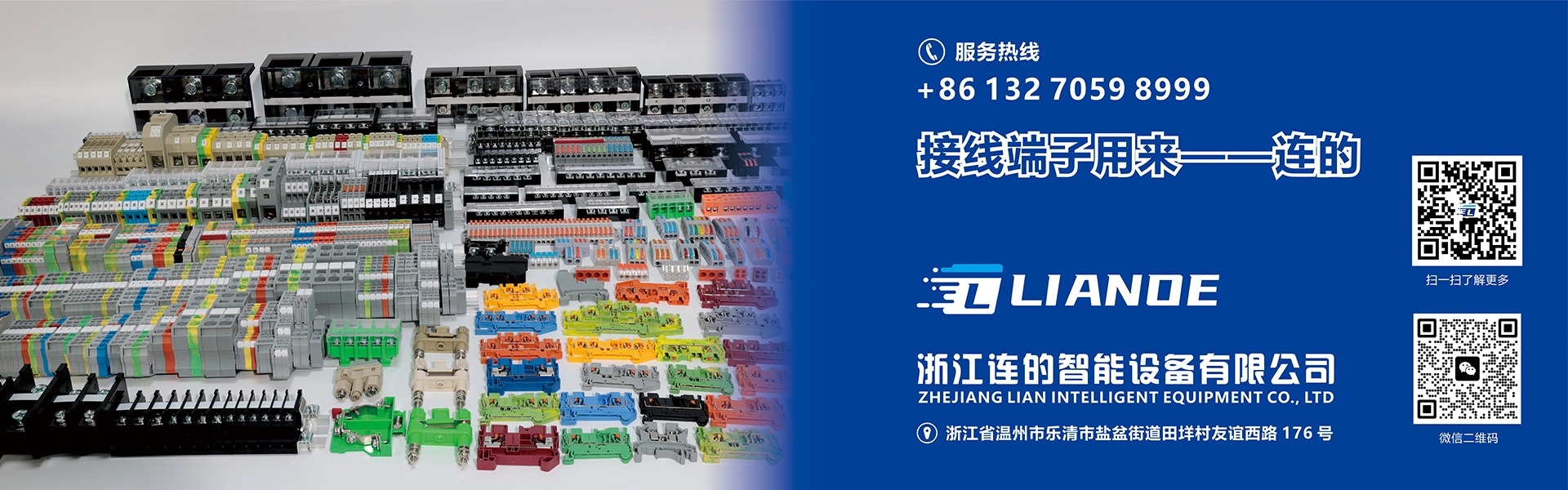 浙江連的智能設備有限公司是專業從事接線端子研發,生產,銷售及售后的企業。連的智能的各種接線端子均獲得國內權威機構CQC,國際CE及ISO9001質量管理體系認證。